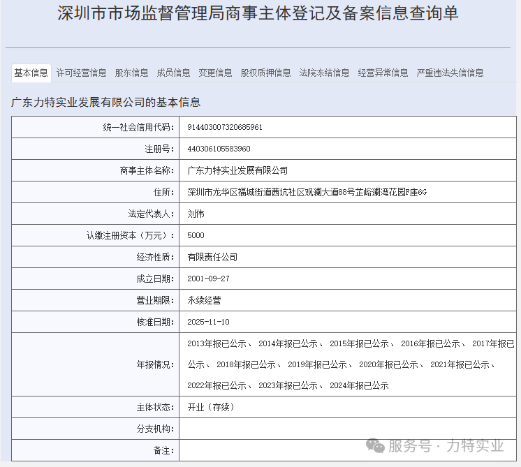 原公司名称:深圳市力特实业发展有限公司
